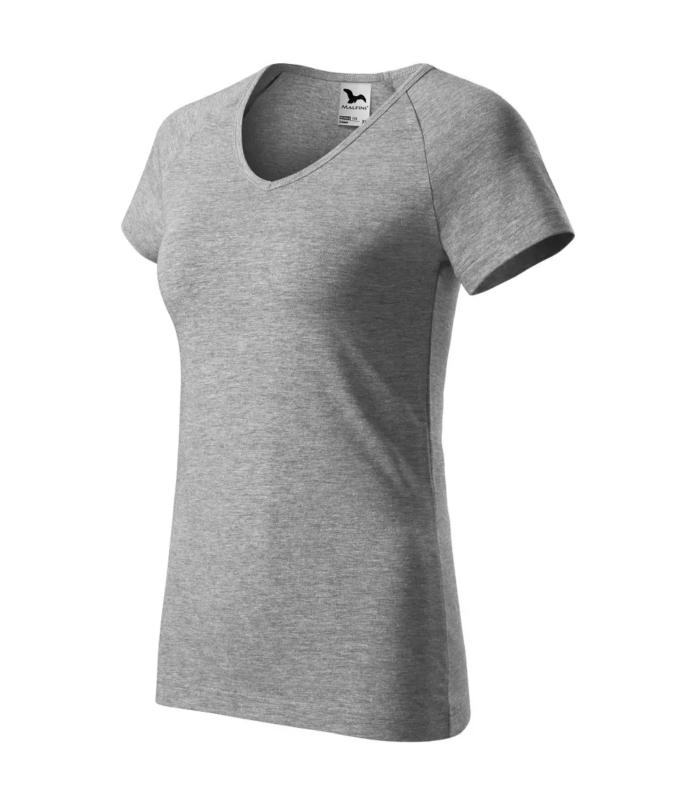 Kvalitní dámské triko vyšší gramáže, průkrčník ve tvaru "V", krátký raglánový rukáv, projmutý střih zvýrazňující dámskou siluetu. Díky přídavku elastanu drží tvar a perfektně sedí na těle. Vhodné pro potisk a výšivku. Materiál 95 % bavlna, 5 % elastan, Single Jersey, 180g/m2