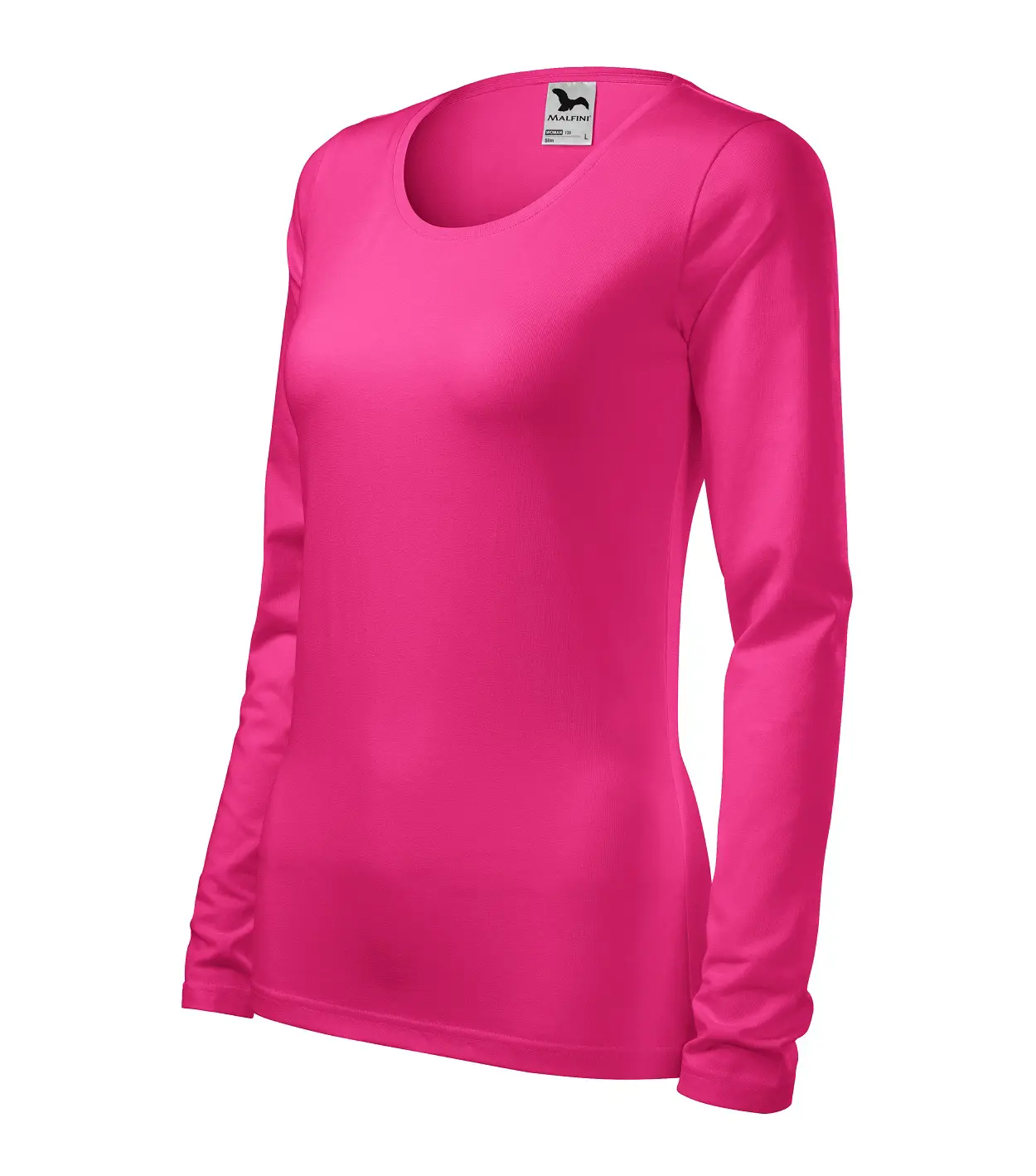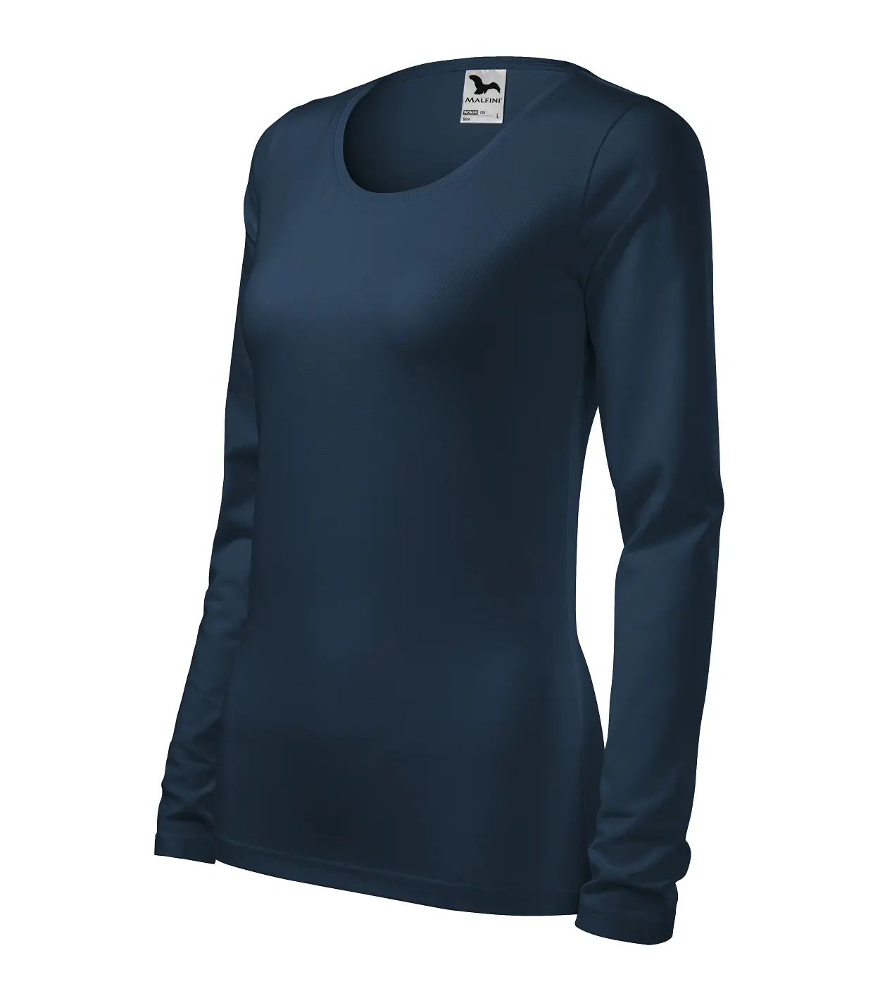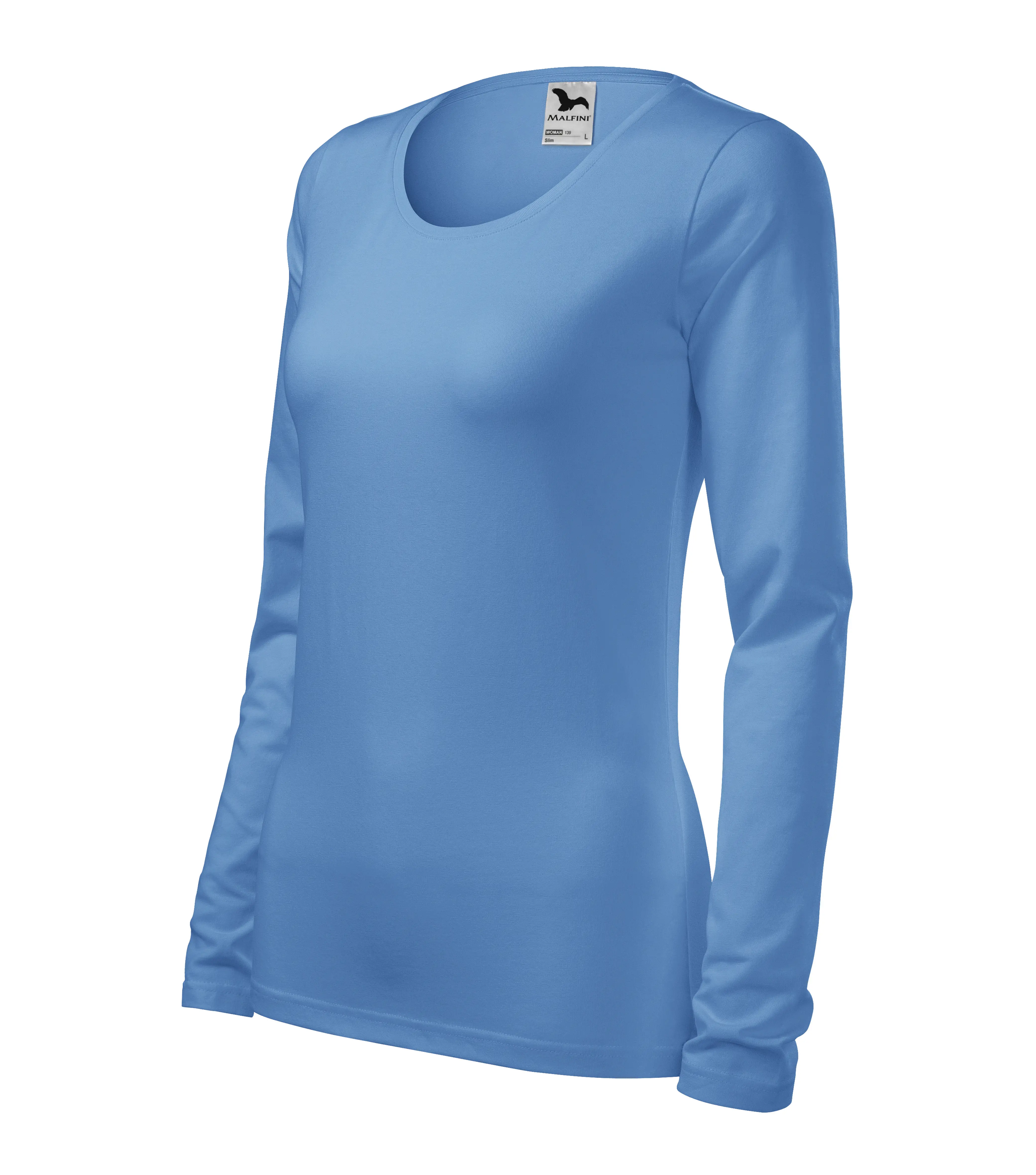 Dámské triko vyšší gramáže s dlouhým rukávem. Příjemný materiál s přídavkem elastanu pro větší stálost tvaru. Projmutý střih s bočními švy zvýrazňující dámskou siluetu. Kulatý průkrčník s úzkým lemem ze stejného materiálu. Vnitřní část zadního průkrčníku začištěna páskou. Zpevněný ramenní šev.