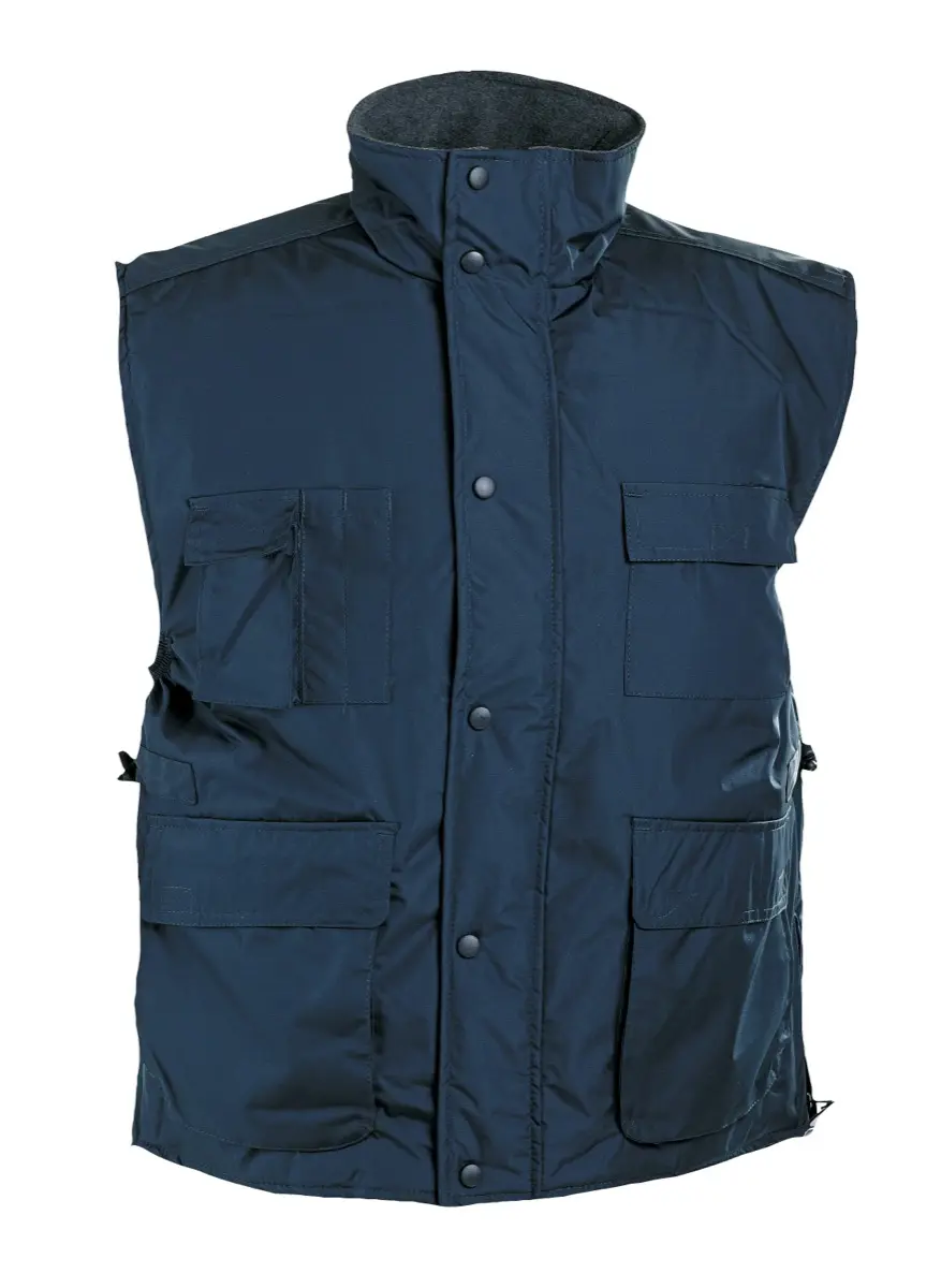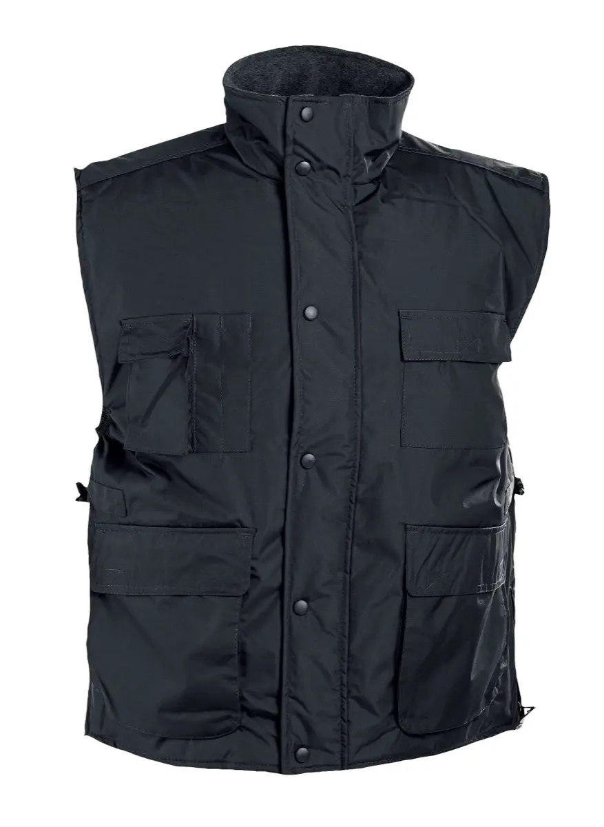 Propracovaná zateplená nepromokavá vesta z odolného materiálu RipStop, má prodloužený zadní díl, boční rozparky, praktické kapsy, stahovací pásky v podpaží a v pase.