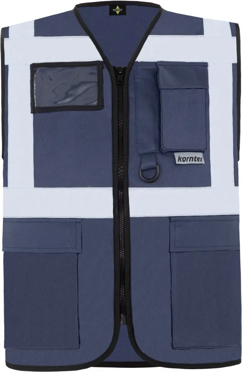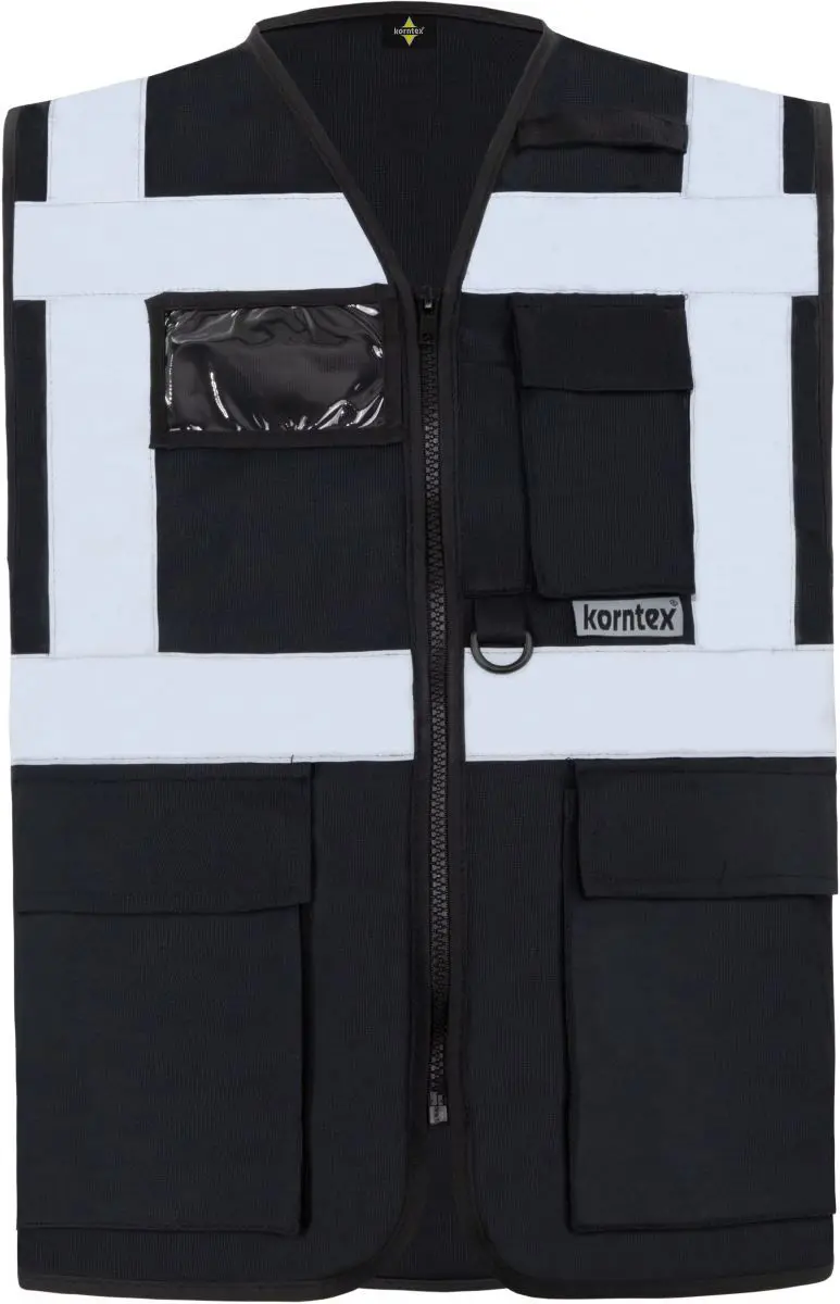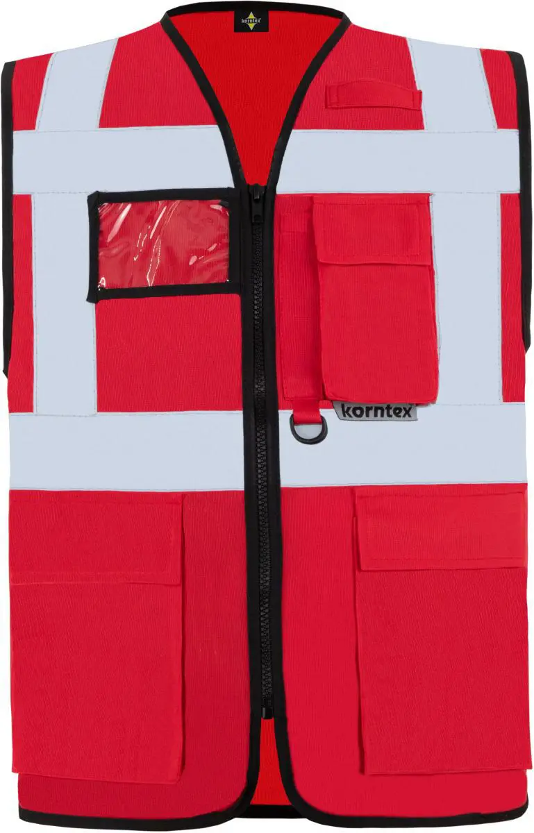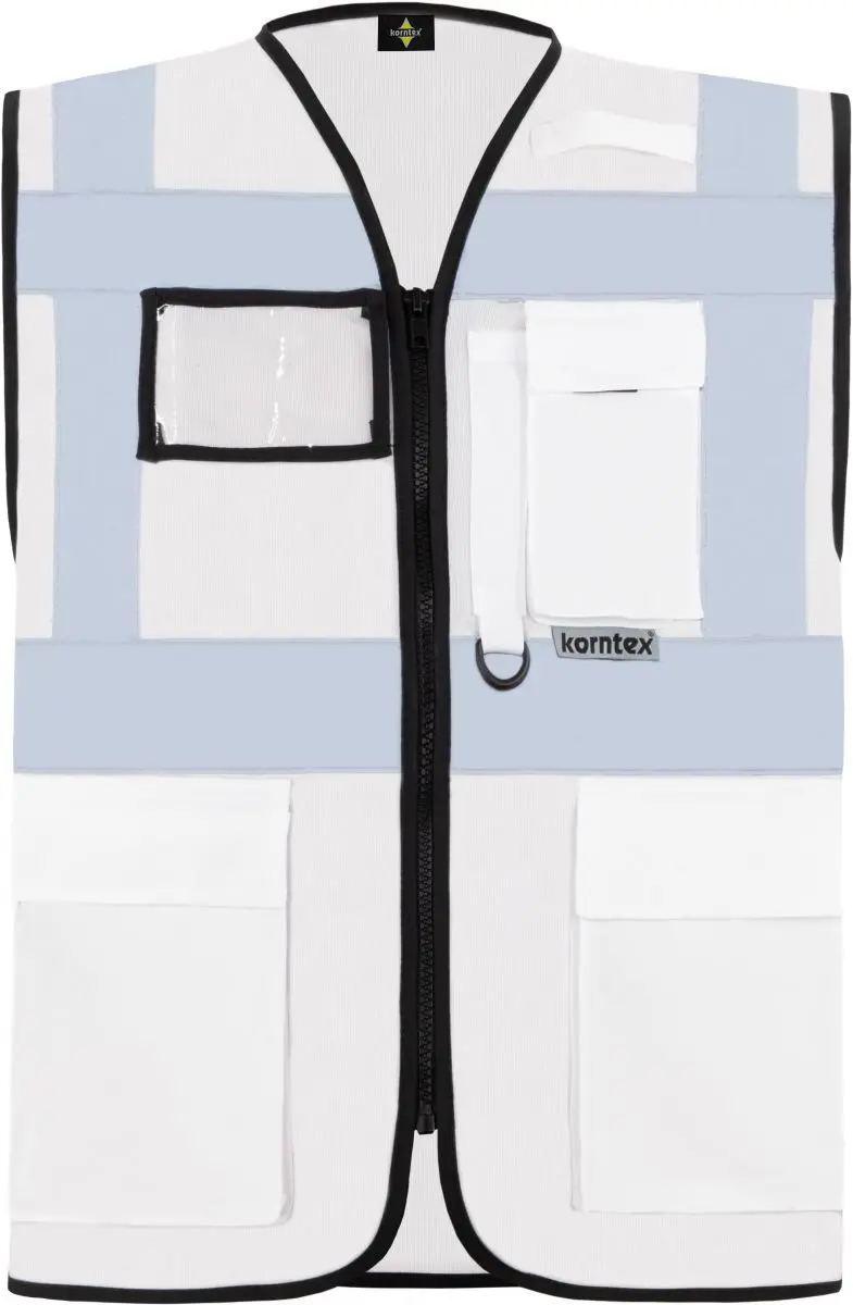 Multifunkční vesta. Plný přední zip, 2 kapsy s klopami na suchý zip, kapsa na doklady, kapsa na smartphone, přihrádka na pero, kroužek na klíče, neon pink a neon green certifikované podle EN1150, barvy yellow, orange, yellow/orange a yellow/blue odpovídají EN ISO 20471 (všechny ostatní barvy nevyhovují), čtyři reflexní pruhy široké 5 cm. Materiál: 100% polyester. Vel. S-5XL