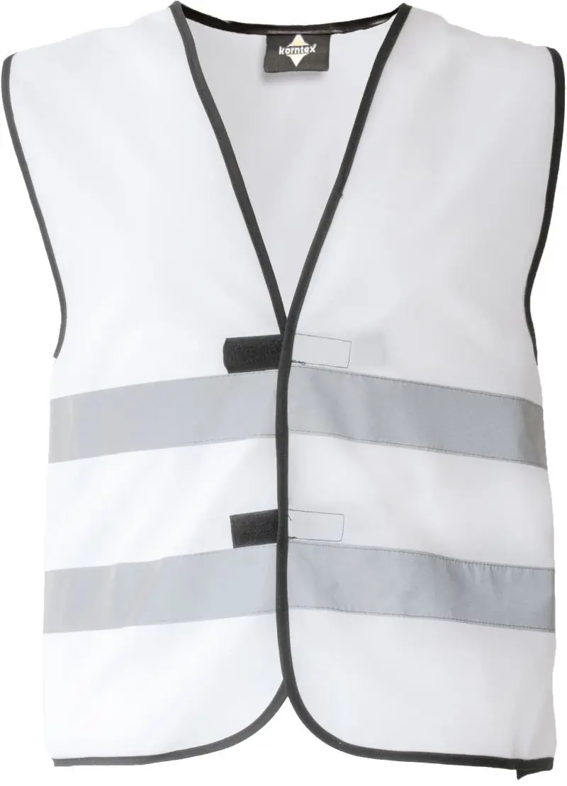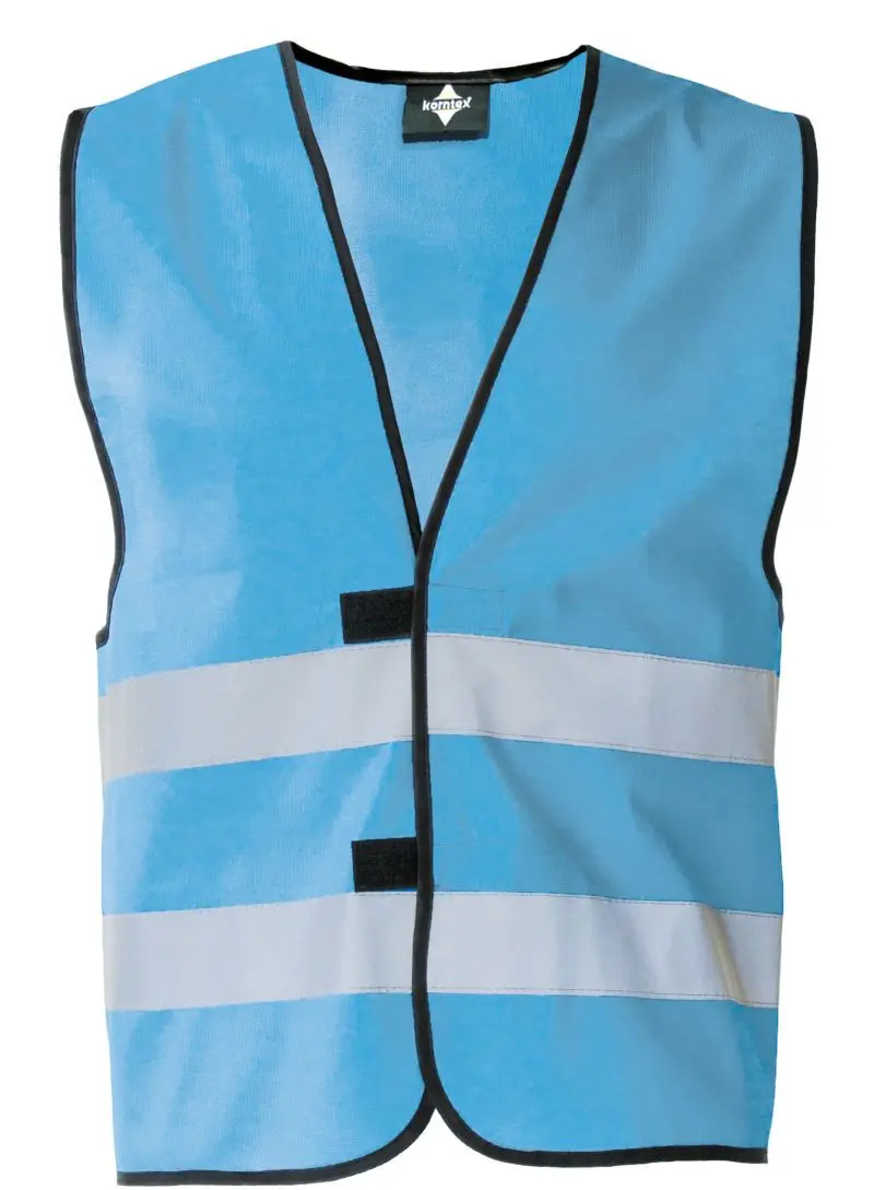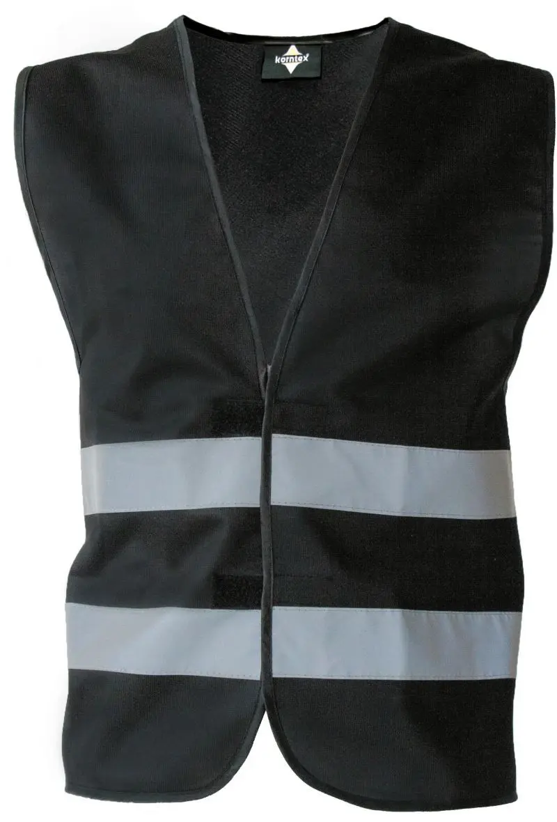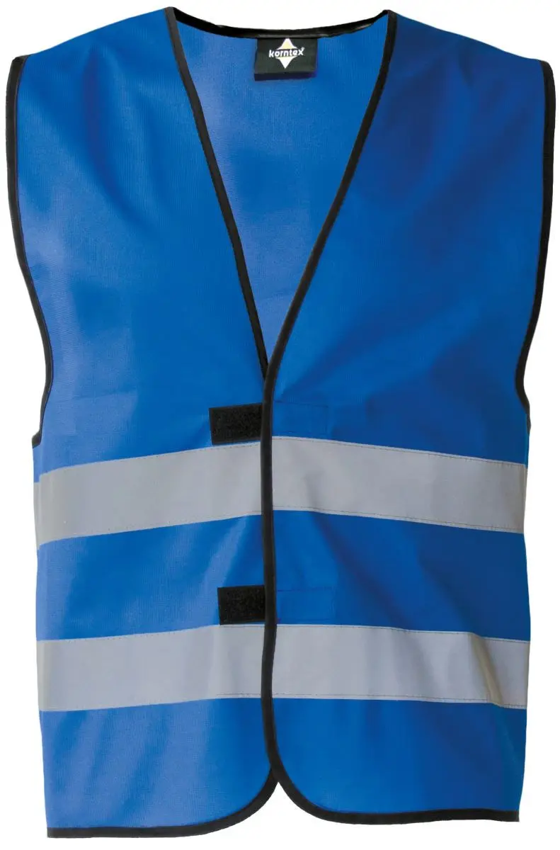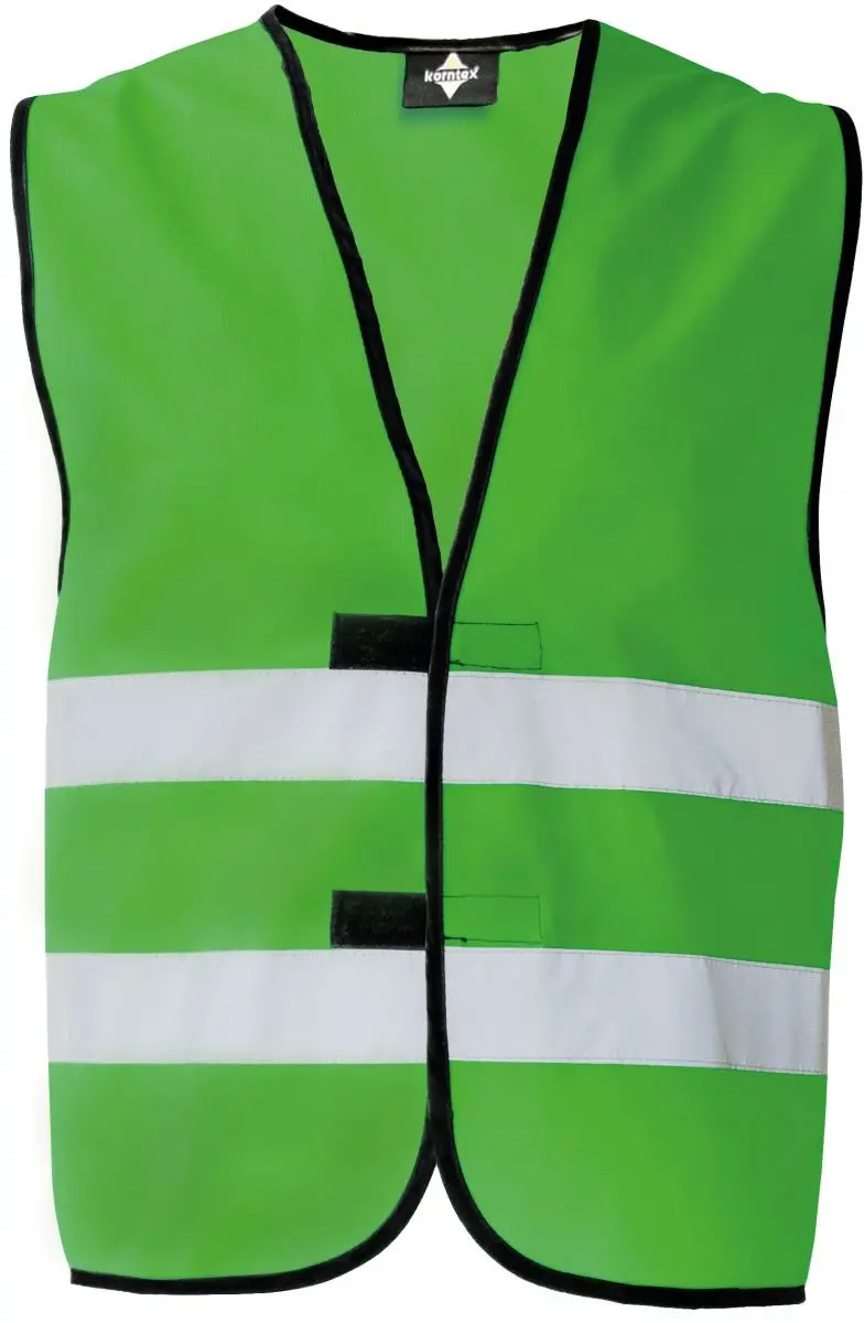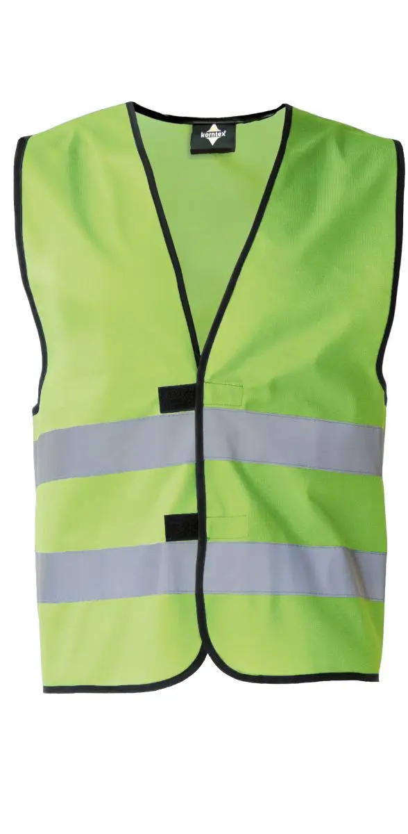 Funkční vesta. Lemovaná černým polyesterovým lemem, nastavení velikosti pomocí 2 suchých zipů, dva reflexní pruhy široké 5 cm kolem těla (bez ochranné funkce. Materiál: 100% polyester. Vel. S-5XL