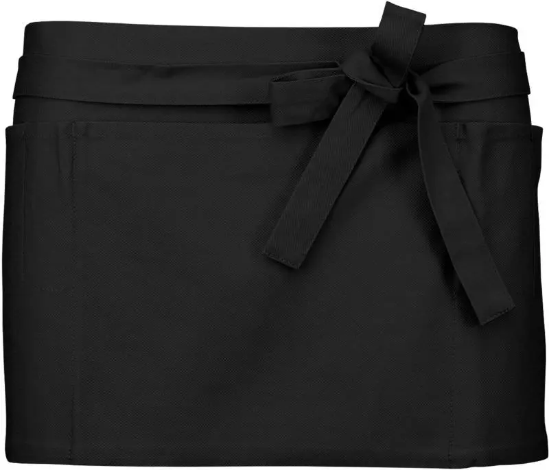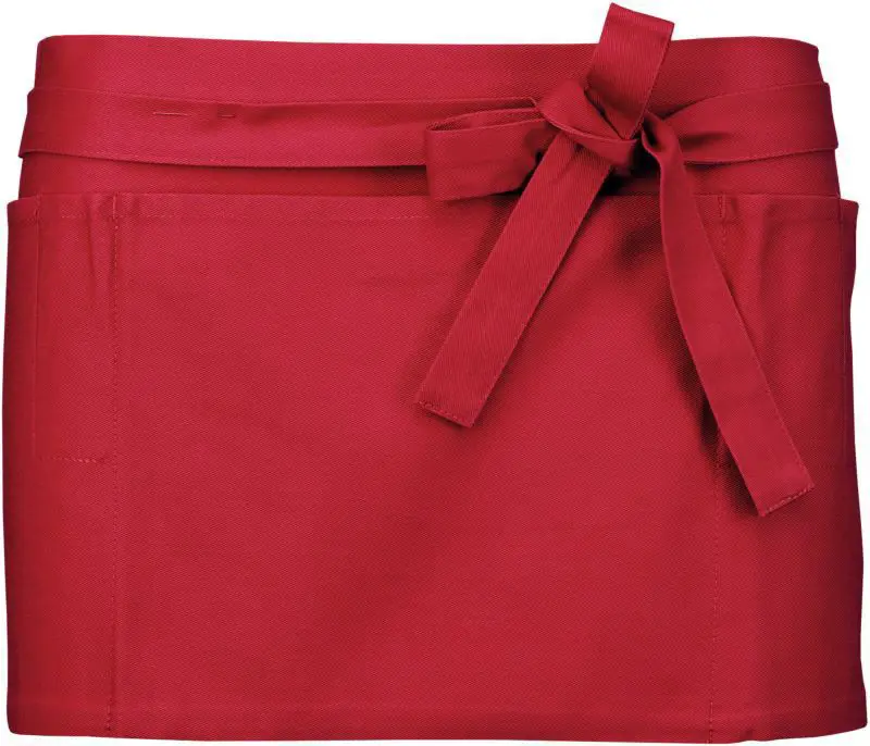 Barová zástěra krátká. Odolný materiál, easy care, 5 kapes (3 velké a 2 malé), rozměry: 70x26cm, pratelné na 60°, lze sušit v sušičce při nízké teplotě, nelze chemicky čistit. Materiál: 280g/m2, 100% bavlna